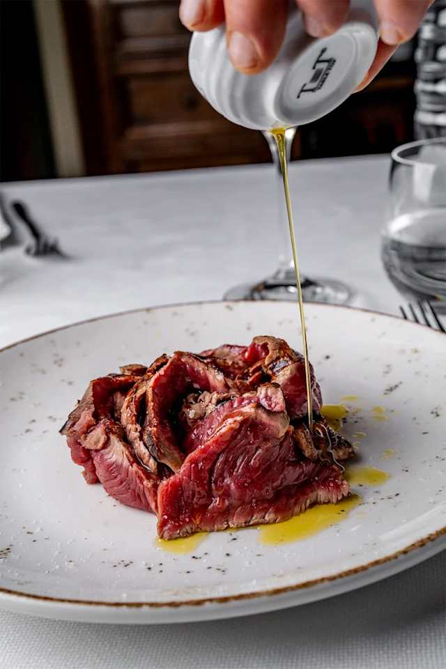 - Tagliata di manzo con olio extravergine aromatizzato al rosmarino