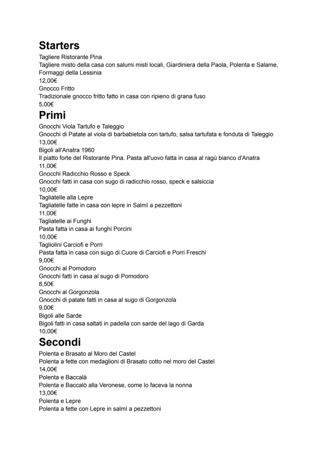 10/10Like eating on the big family porch at mama’s house with local Italian food and wine and excellent service from all the family while man cooks. We were thrilled with the whole experience. Pasta with duck sauce and streak were particularly great.