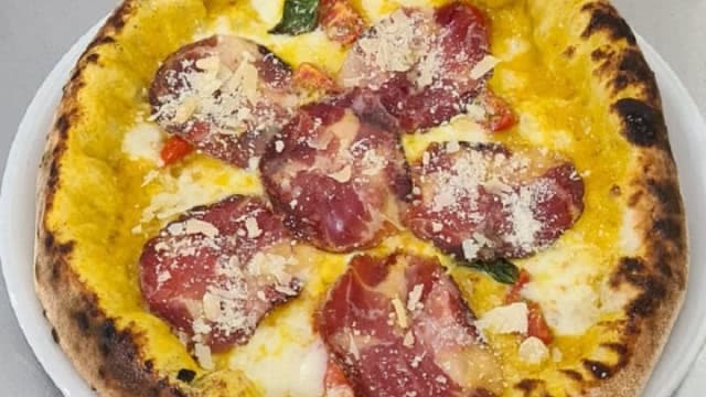 Pomodoro s.marzano, fiordilatte di agerola, parmacotto, carciofi freschi a spicchi, funghi freschi champignon e olive itrane
