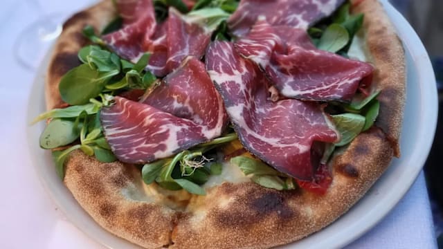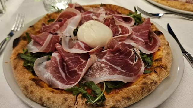 Pomodoro DOP, fior di latte, rucola, crudo di parma DOP 24 mesi, burrata di bufala DOP DOP