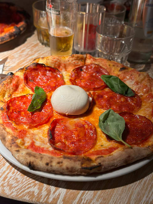 10/10I felt like a don of the mafia in this Neapolitan restaurant. The atmosphere was amazing! The food was delicious. Very colorful, polite, and cool staff. 100/10 from me and my wife