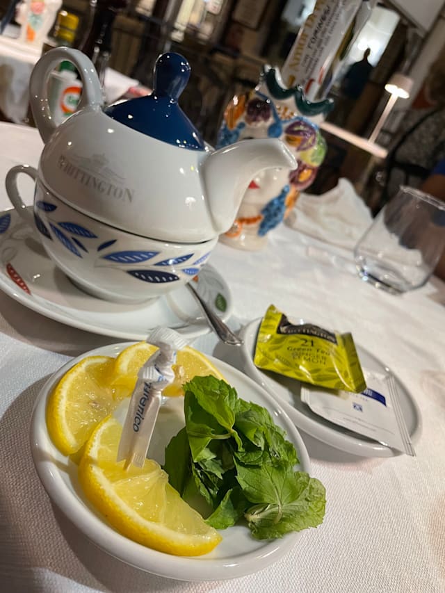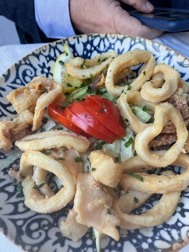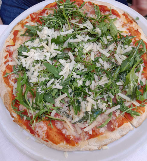 9.5/10The menu offered a huge choice. We had Risotto Verdura and a big tuna salad. Both were delicious. We had a half carafe of red wine which was fine but a bit pricey at 12.5 euros. When we were given the bill, we were also given a small shot of tasty almond wine which was a very nice gesture. We sat on the terrace. Service was very good but I do wish the waiter hadn’t taken my plate while I still had a mouthful of food. Made me feel as if I was being rushed out!