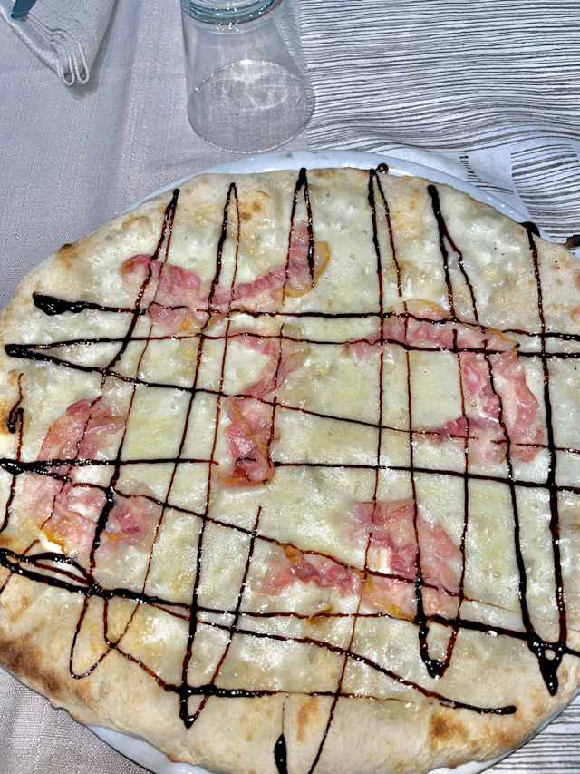 - Pomodoro,mozzarella, gorgonzola, pancetta