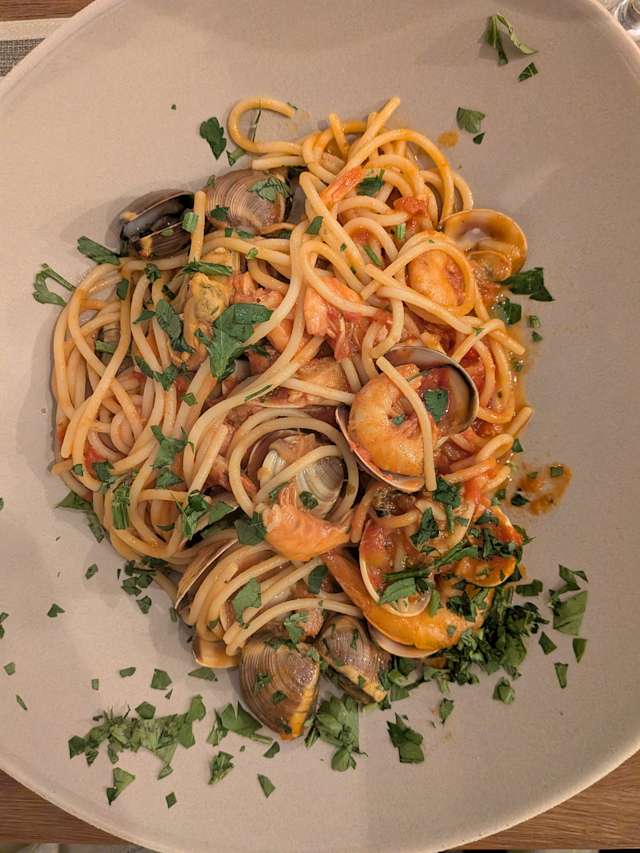 - Gli spaghetti ai frutti di mare (rosso)