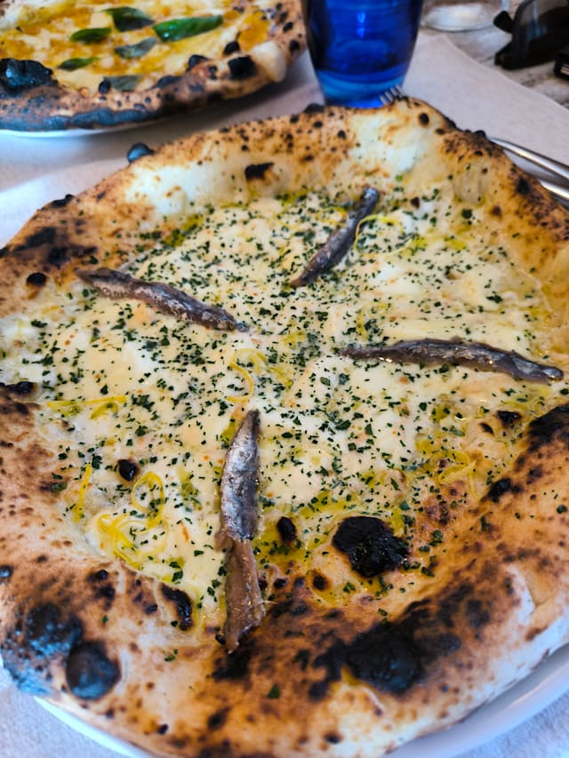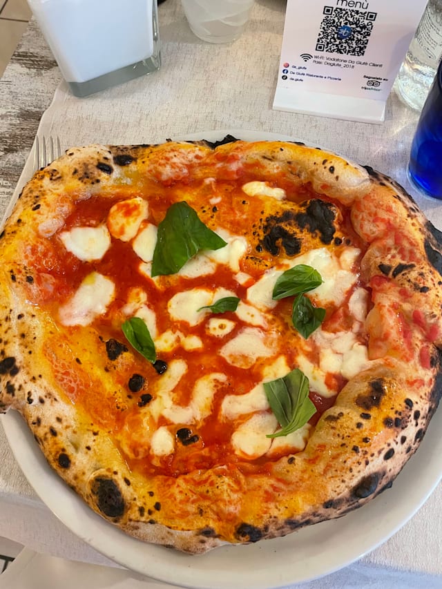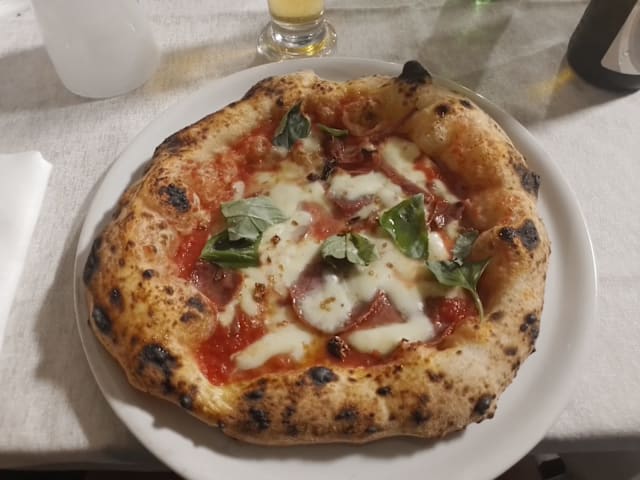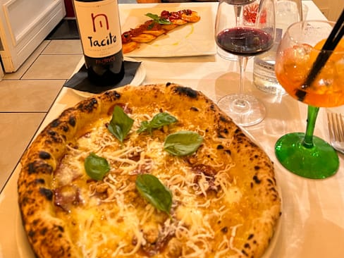 9.5/10Fabulous, light, fluffy pizza dough with great tasting tomato & garlic on my Marinara Pizza. Fresh, tasty and cooked to perfection. Staff were very friendly and helpful, and considerate of my limited Italian. Great value.