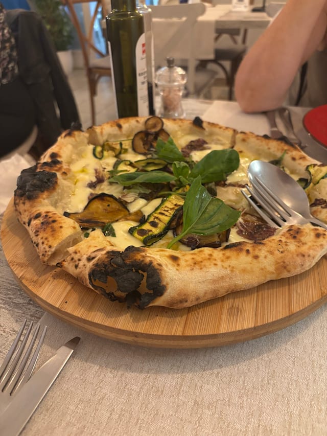 9.5/10We enjoyed dinner at this restaurant while we were staying in Vietri sul Mare. Very easy to find on one of the major streets in Vietri and near our hotel, many tables available for outdoor seating, English spoken (important to us as our Italian is limited). Excellent food, good wine. I tried one of the more interesting pizzas, which was delicious, and my husband had the ravioli which was amazing (many people around us ordered the ravioli also and were also raving about it.)