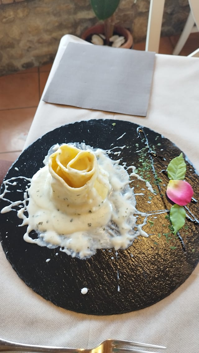 Crostini misti, prosciutto crudo, finocchiona, salame, capocollo, pecorino di pienza con marmellate casarecce, pappa al pomodoro con straccetti di burrata e sorpresa del cuoco.