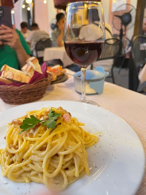 5/10The food was not as expected, I ordered Greek salad for my starter, no dressing only the balsamic vinegar and olive oil on the table to mix in. Next course even worse, definitely the worst Carbonara Ive ever tasted, not to mention having to pass through no entry cameras to get there. Not a good experience!!