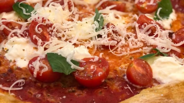 Mozz. di bufala, pomodori ciliegini, parmigiano, basilico
