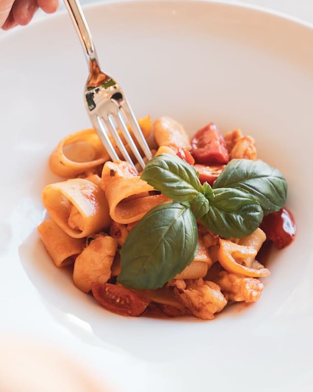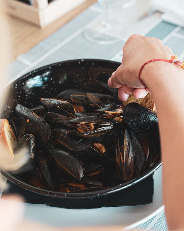 Salsa di pomodoro da polpa italiana, mozzarella fior di latte. Molluschi e crostacei