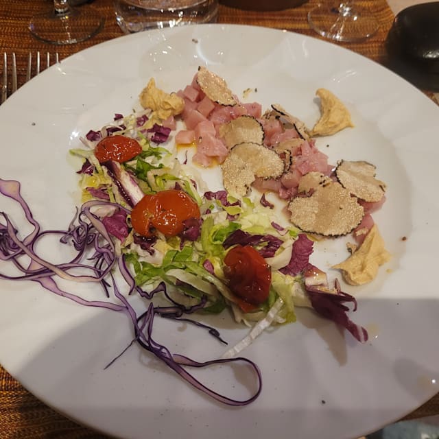 6.5/10The attention given by the staff was outstanding. Their helpfulness with everything, including managing an allergy in a language different from Italian was exemplary. However, whilst one starter we had was fine, the other was disappointing, and the main course of guinea fowl was bland