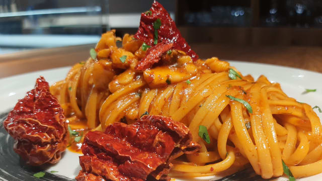 LINGUINE AL BACCALA' CON PEPERONE CRUSCO DI SENISE