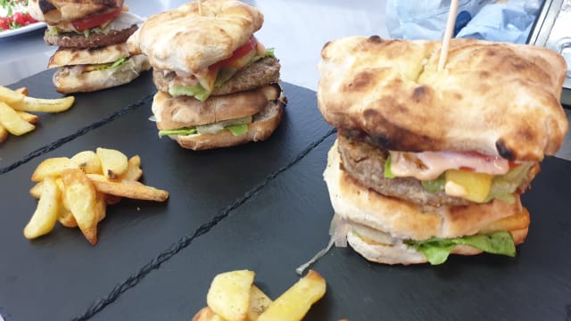 Pizzabab (mini cilicta farcita con kebab di pollo , patatine , salsa rosa ,pomodoro, bufala)