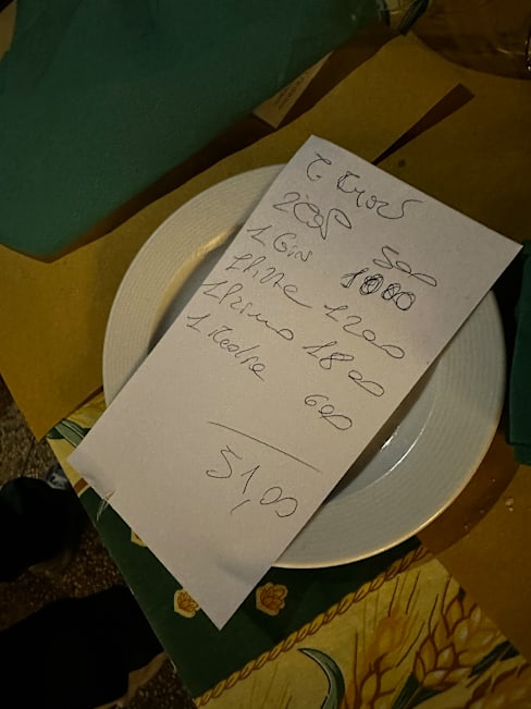 8.5/10the food was okay but the waiter scammed us. he wrote the receipt on a paper (not an printed one), and he added 5€ bread that we didnt order, and he added +2€ for my food and +2€ for my drink. i think it was extremely rude considering we were about to tip. we didnt say anything because we didnt wanna be awkward. we were thinking of coming again because our airbnb is really close by, but this made us feel really unwelcome. i hope pulling out some extra euros from us was useful for them