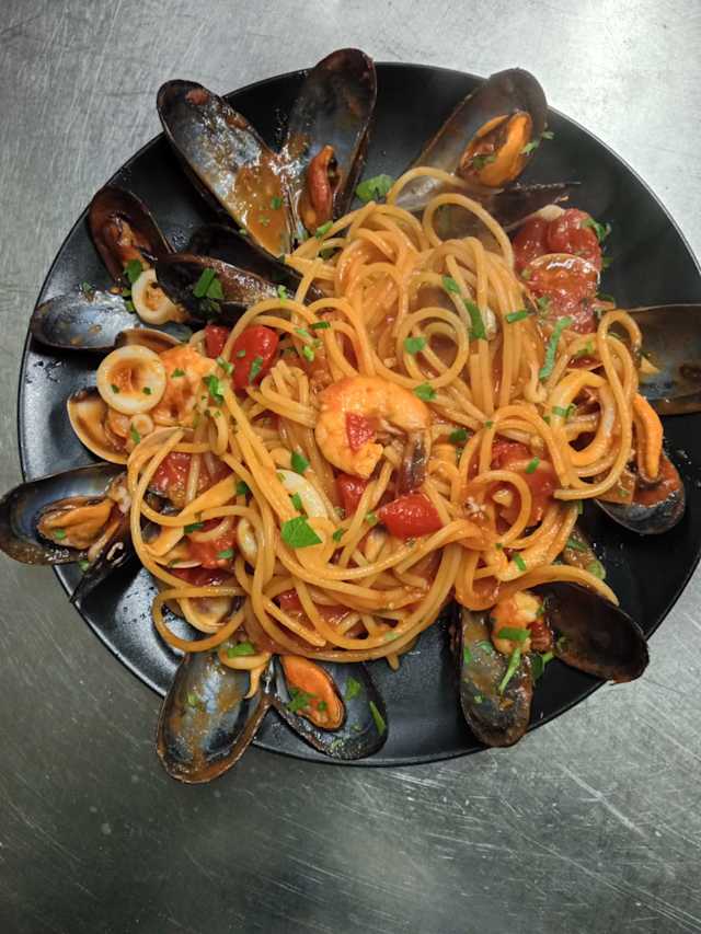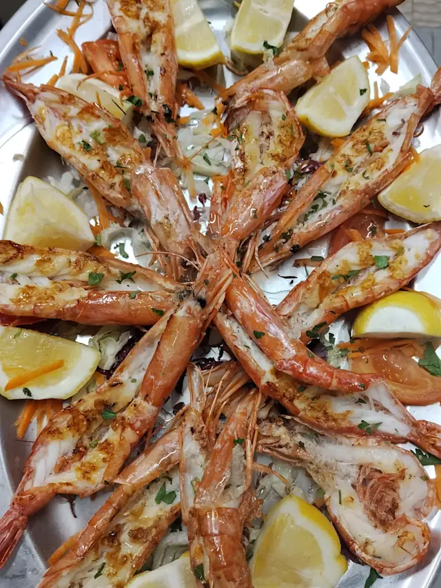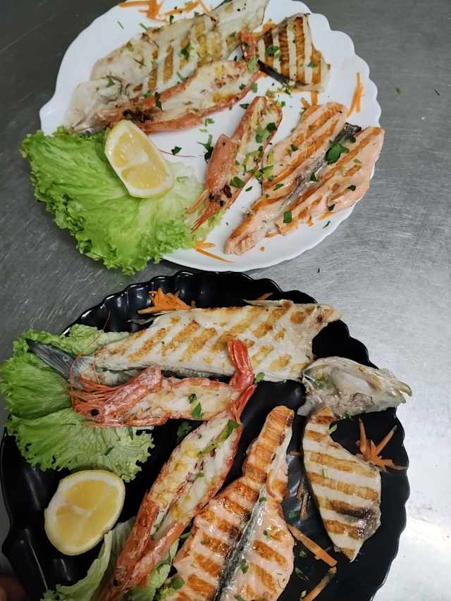 - (cocktail di gamberetti, polpo di patate, salmone marinato, gamberetti e rucola, capesante gratinate, chele di granchio fritte)