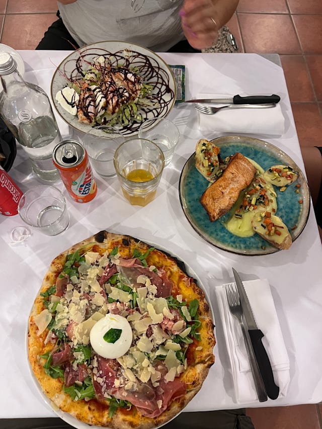 Meat CuisineMediterraneanPizzeriaSeafoodEuropeanItalianPizzaGood for familiesGood for groupsLunchOsteriaWith friendsVegan dishesAmerican ExpressWheelchair AccessibleWifi