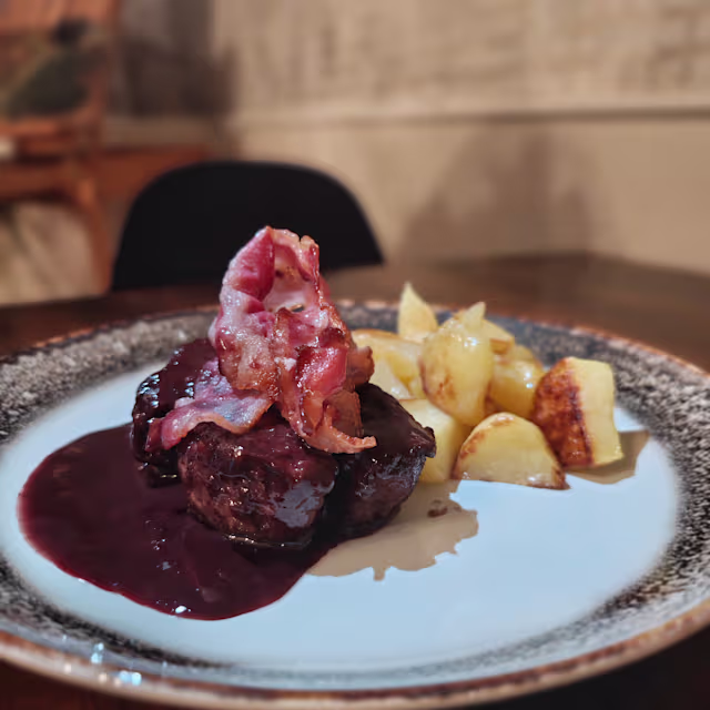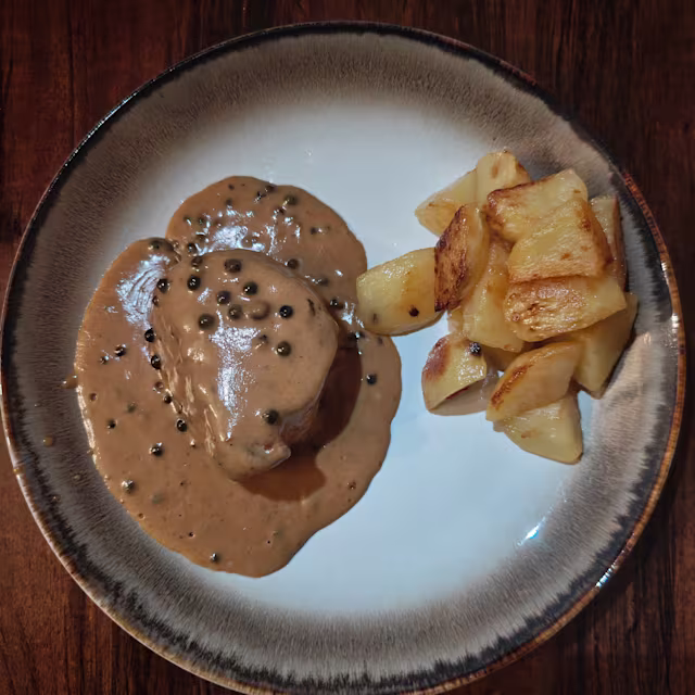 - Filetto di angus “uruguay” salsato al gorgonzola dolce e funghi porcini