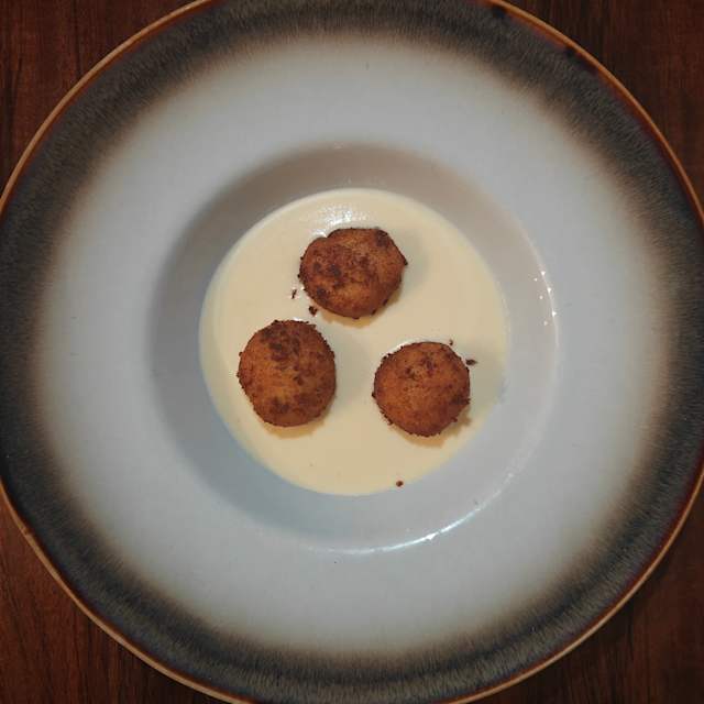 - Arancinetti fritti al cous-cous ripieni di ragù su fonduta di grana padano