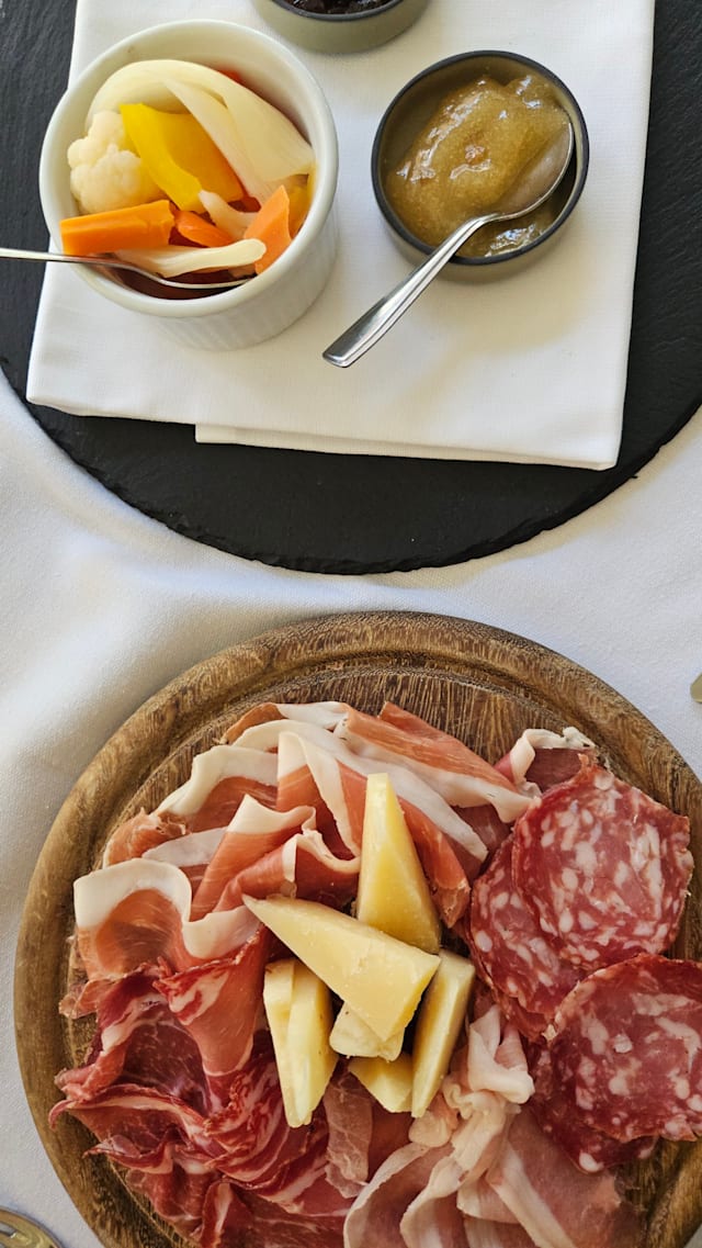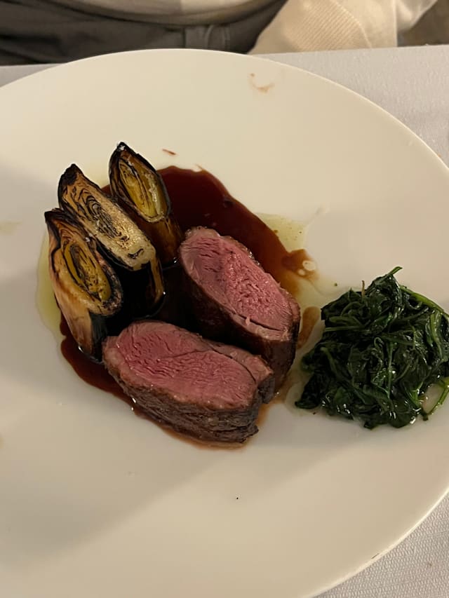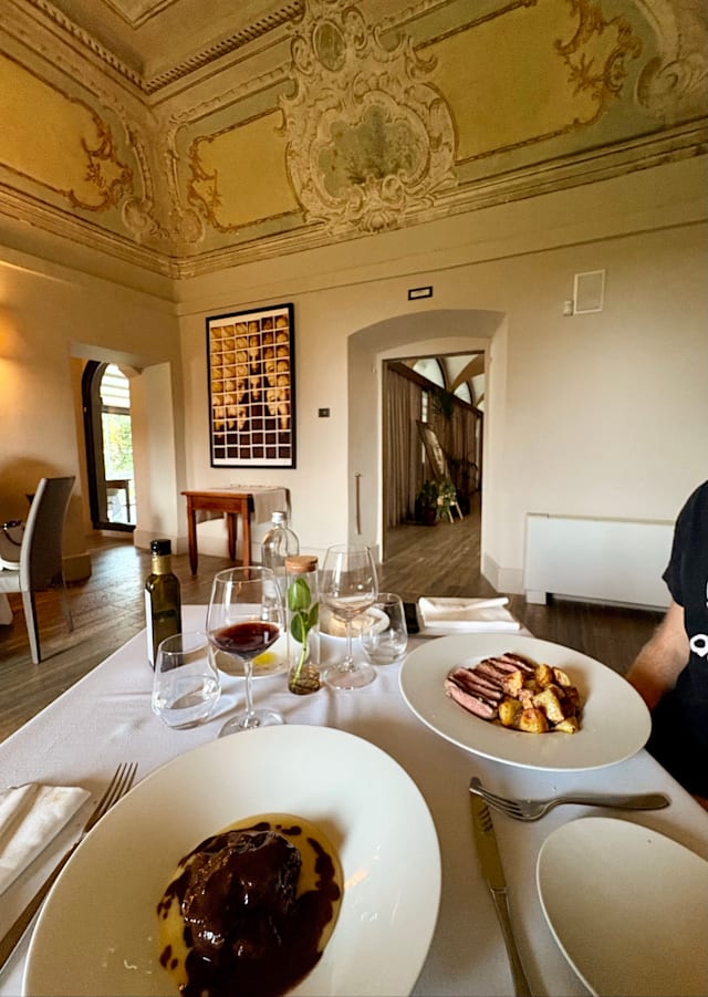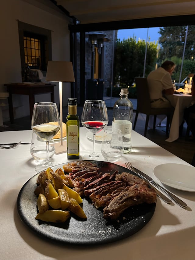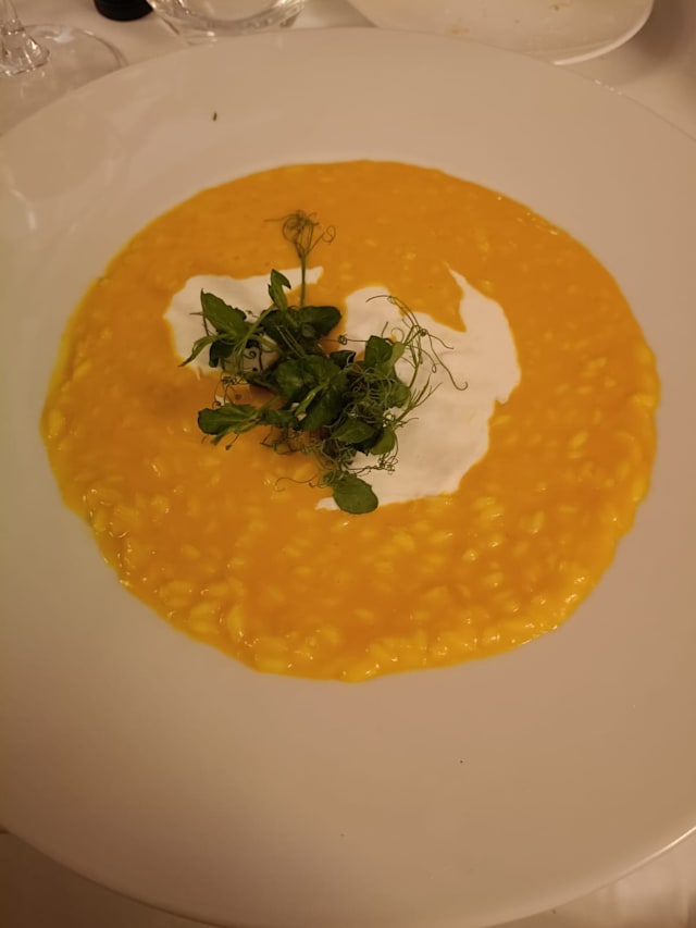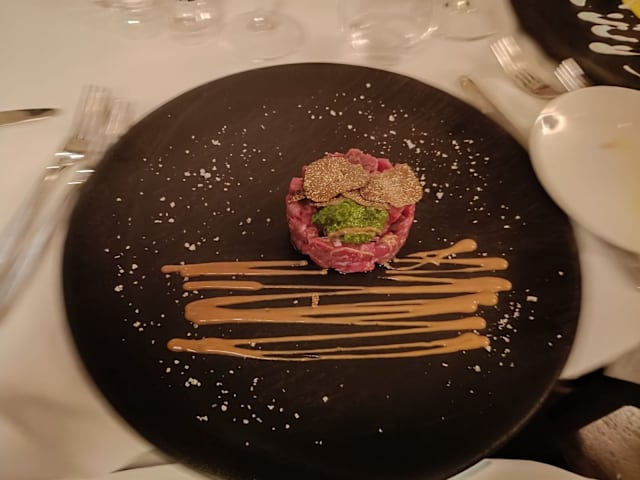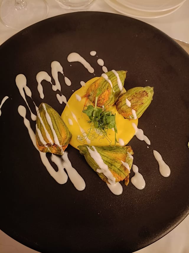 9/10Excellent location overlooking the greenery and a well-kept garden. Aperitivo ‘ al fresco’ followed by dinner at a well-set table. Small portions with well-balanced flavors and pleasing combinations, you can have a starter, first or second, and a dessert. Cellar showcasing their production of wines. The only off-key note, I would like to imagine unintentional, the horrible practice of providing the 'ladies' with a blind menu (no prices). To me, the sexist legacy of the times when we were helpless and completely dependent on the magnanimity of the 'gentleman' companion. Wake up little girls.