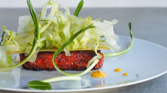 Carciofo arrostito, patate, prosciutto crudo croccante e tartufo nero