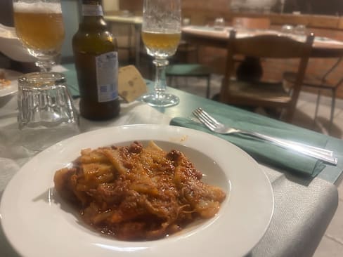 8/10We got there at 8:30 just before most guests started to arrive, so perfect vibe could have been 9pm booking. Although, at least we had the chance to order first. The waitress was so welcoming and lovely, however she was working alone and run off her feet, so I did feel a little bad that she was trying to service a 50% full restaurant by herself. The food was amazing, we loved the pesto pasta. Delicious house red wine too. Would go back!
