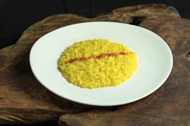 - Un classico risotto, mantecato con zafferano e arricchito da parmigiano croccante