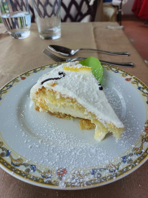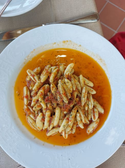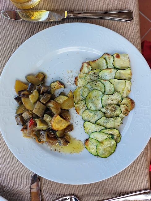 10/10Lovely small terrace with spectacular view. Family run hotel and great, well priced traditional cooking- nothing too smart or clever but great quality well cooked tasty food. I had the 3 course meal of day for €35, lentil soup, grilled grouper with breadcrumb crust and lemon, tasty potatoes and peas, and a good tiramisu. Husband had a la carte delicious wild boar starter and veal escalope in lemon sauce. House white or red €5 a glass. Lovely relaxed ambience. Fun evening as we joined other guests for a drink after- such an intimate small terrace. Do go for drink on the garden terrace before dinner tho wrap up- it's elevated and getting cooler in October!- the dinner terrace is much more sheltered and has effective heaters.