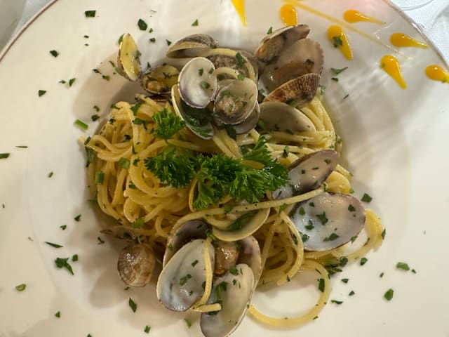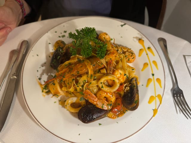 10/10Service was exceptional and the servers ( especially Nayem) were so kind and knowledgeable. The tagliatelle with seafood was to die for as was the spaghetti with clams. The bread was the best we’d had in three weeks in Italy and if you have room for the tiramisu, go for it! Sublime…