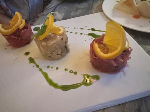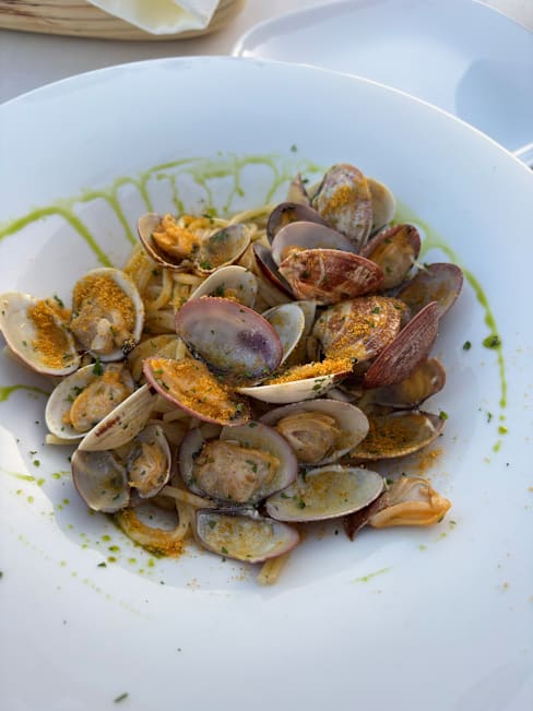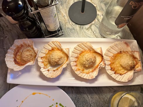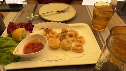 7/10Due to the rain, we had to sit inside the restaurant. We got a great table, and the staff was very friendly. The appetizers were excellent, and we were already looking forward to the fish. The fish was good but far from what we had expected. It was a whole turbot, but not grilled—instead, it came with a tomato-olive sauce and potato slices. It tasted quite good, but not as outstanding as the one we’d had the previous evening at another restaurant. It seemed like it wasn’t day-fresh. Very disappointing, especially considering the really high price. But as mentioned, the rest—including the ambiance and staff—was outstanding.
