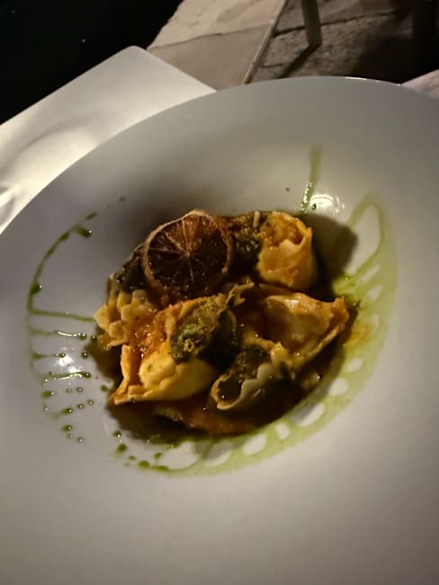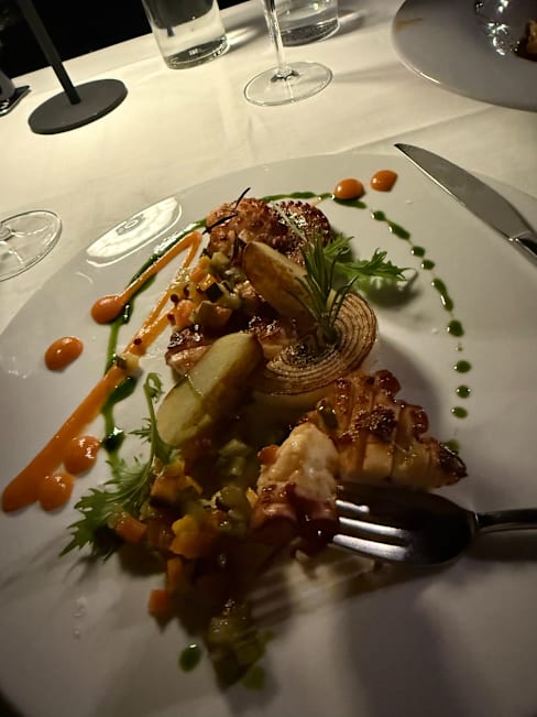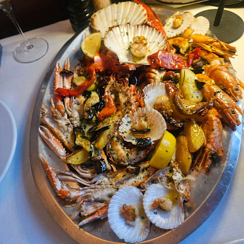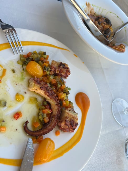 7/10Due to the rain, we had to sit inside the restaurant. We got a great table, and the staff was very friendly. The appetizers were excellent, and we were already looking forward to the fish. The fish was good but far from what we had expected. It was a whole turbot, but not grilled—instead, it came with a tomato-olive sauce and potato slices. It tasted quite good, but not as outstanding as the one we’d had the previous evening at another restaurant. It seemed like it wasn’t day-fresh. Very disappointing, especially considering the really high price. But as mentioned, the rest—including the ambiance and staff—was outstanding.