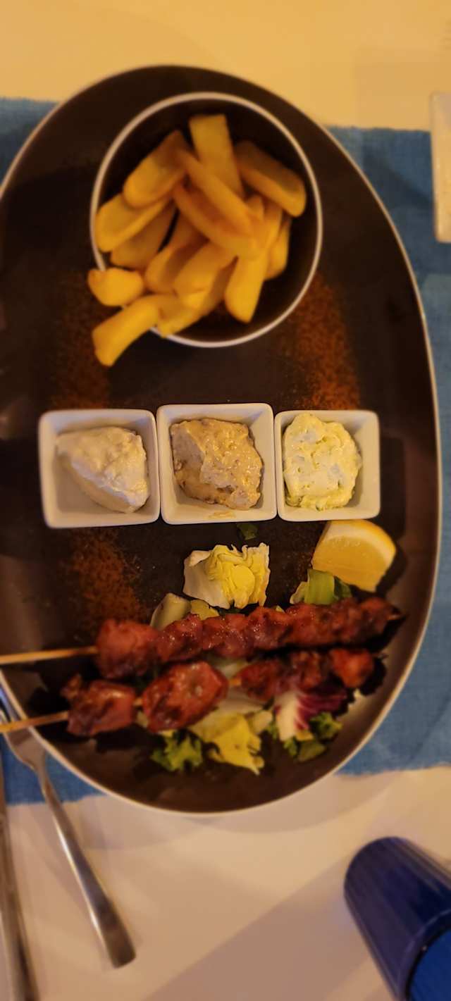 8/10The food was really tasty and the wine was excellent! Very good prices in addition to the food. I would like more garlic at tzatziki. Also the decoration was very beautiful.