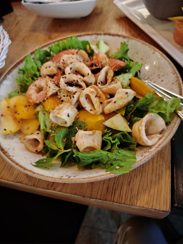 7.5/10The food is great. Unfortunately, it's a case of give and take. I ordered fish, which was supposed to be served with grilled vegetables. I asked if the fish could be grilled instead of steamed. She said that wouldn’t be a problem. But when the fish arrived, it came without the vegetables. When I asked about it, it turned out that if you order the grilled version, it only comes with a lettuce leaf. Of course, this wasn't mentioned when ordering. I had to order vege separately. The absolute highlight was when a spoon fell on my friend, and instead of asking if she was okay, the waitress just said she'd go get another spoon. When we asked about a non-alcoholic sorbet, we were told it would cost the same as the one with alcohol. The waitress recommended a seafood platter for sharing among six people, but it was served in a way that made sharing impossible (2 oysters, 4 shrimp, and two other items). Instead of suggesting a better option, we had to decide who wouldn’t get to try something.