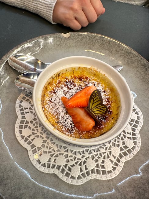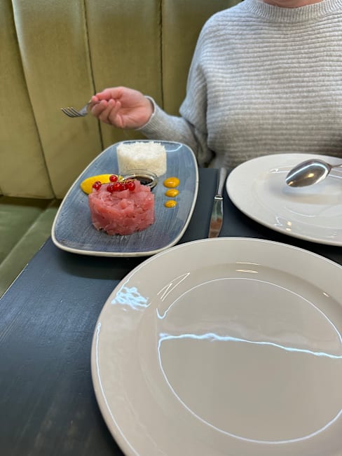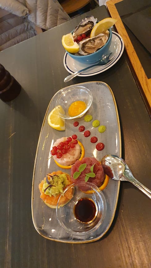 7.5/10The food is great. Unfortunately, it's a case of give and take. I ordered fish, which was supposed to be served with grilled vegetables. I asked if the fish could be grilled instead of steamed. She said that wouldn’t be a problem. But when the fish arrived, it came without the vegetables. When I asked about it, it turned out that if you order the grilled version, it only comes with a lettuce leaf. Of course, this wasn't mentioned when ordering. I had to order vege separately. The absolute highlight was when a spoon fell on my friend, and instead of asking if she was okay, the waitress just said she'd go get another spoon. When we asked about a non-alcoholic sorbet, we were told it would cost the same as the one with alcohol. The waitress recommended a seafood platter for sharing among six people, but it was served in a way that made sharing impossible (2 oysters, 4 shrimp, and two other items). Instead of suggesting a better option, we had to decide who wouldn’t get to try something.