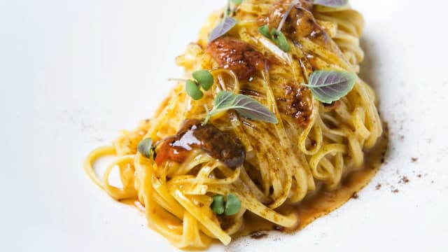 - Primi piatti - spaghettone cacio & pepe e riccio di mare