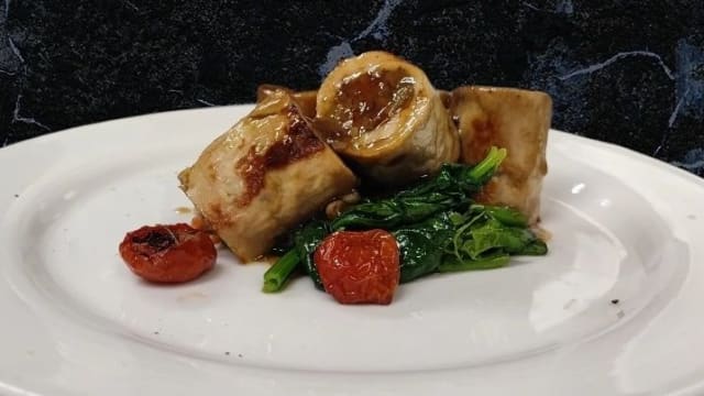 Involtino di orata con fichi, noci e riduzione agli agrumi