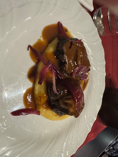 Dear Kira, Thank you so much for taking the time to leave this lovely review! We are thrilled to hear that you enjoyed the experience of dining in our restaurant nestled behind the delicatessen. It's wonderful to know that the staff made your visit pleasant and that you enjoyed some of our specialties, the tortellini, and the beef cheek in red wine sauce. Your kind words mean the world to us and motivate us to continue serving dishes that delight and surprise. We put our hearts into ensuring every guest leaves with a memorable experience, just like the one you've described. We look forward to welcoming you back soon to try more of our culinary creations! Warm regards, Nicola Scappini