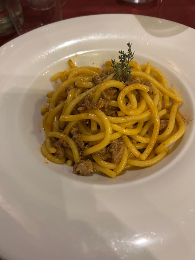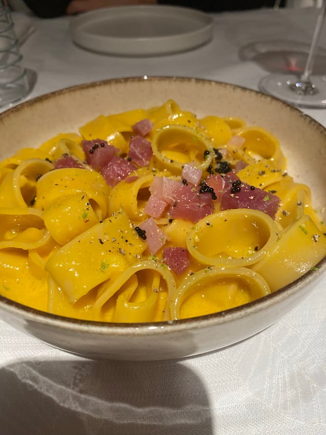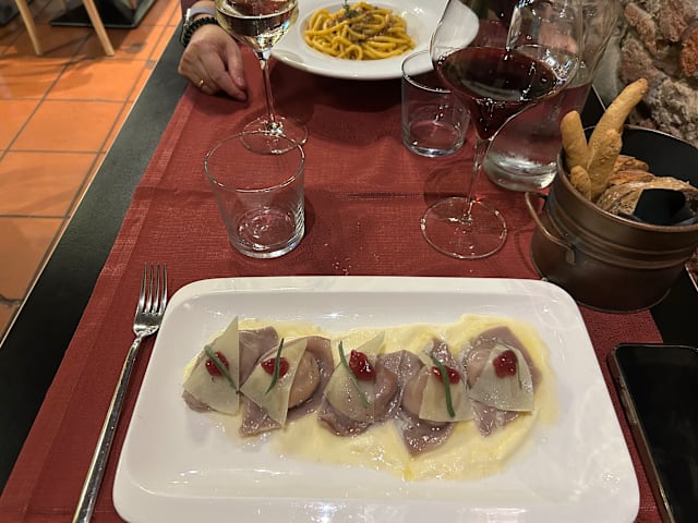 5.5/10Excellent service. Attentive waiter with good recommendations and high quality service. However, the pasta we tried was not good at all. The macharroni were not tasty. The sauce basically consisted of a lot of pepper and cream. Very poor quality. Wines from the region were good though. The waiter can give you good recommendations. If you happen to go there, try something else and not the pasta!