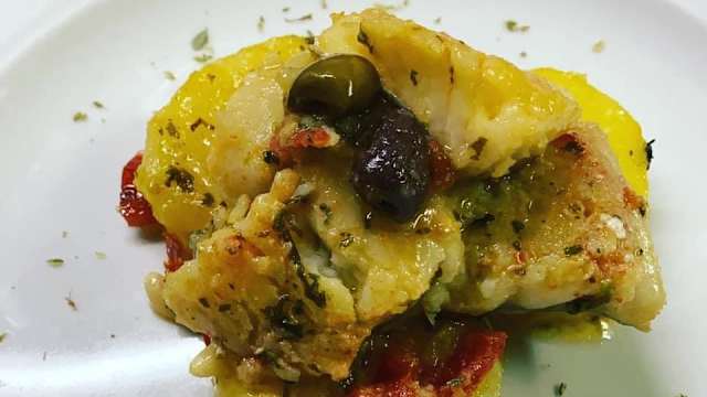 - Orata alla ligure con patate, olive taggiasche, capperi e pinoli