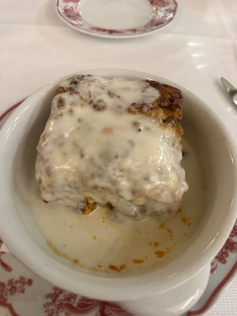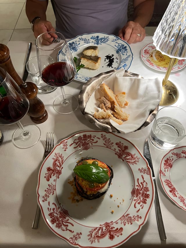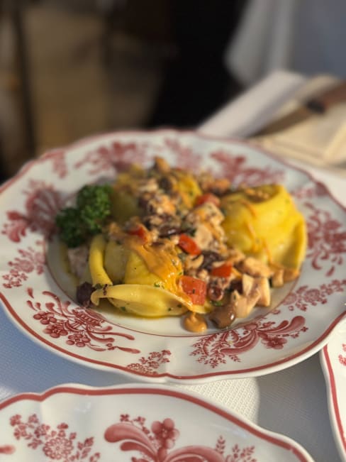 4.5/10Food was definitely not acceptable for what they charged you for $$$ very very small portions I wouldn’t mind if it tasted good but it didn’t the appetizer was the scallops well it was definitely one scallop cut in half and put into two separate shells with the melted cheese then goes the eggplant tower so dry you can choke then the cover charge is $8.00 then there house wine just a quarter glass $9.00 we didn’t order desserts or coffee ridiculous I have been in Florence now for three weeks now this is the first restaurant that was the worst