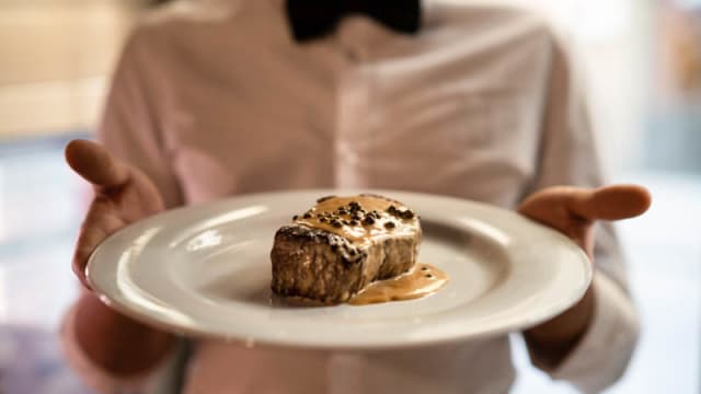 7.5/10The food was very delicious ! Steaks were perfect ! The problem was the air temperature - very warm and stuffy as if the AC was turned way low .