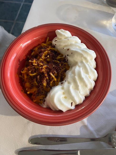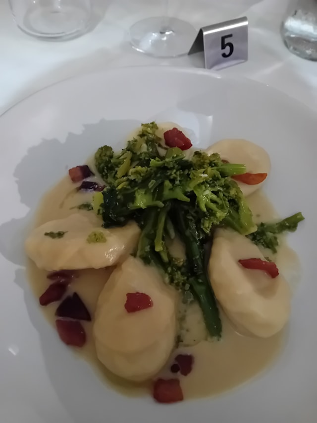 8/10The food is far from the rating of above 9. It is alright, but cooked in a rustic way, like a beef well done and not more. The pasta was terrible because of a burned prosciutto.