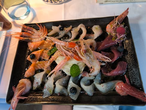 6.5/10My girlfriend and I enjoyed our dinner. However, it was let down by a few little things which would have changed the experience. Firstly, my parmigana starter was served cold - couldn't believe it given I am.in Italy but perhaps it was a local thing? The waiter seemed to understand English until I asked him if it was meant to be cold. Half heartedly he said yes. I asked the Italians next to our table if this was correct and they adamantly said it shouldn't. The mussel and clam linguine was good. The mains were good without being spectacular. They weren't served with everything they were meant to - cold spuds and no veg, as had stated on the menu. Again, English was lost on the waiter all of a sudden. MY "catch of the day" sea food platter was largely overcooked and under seasoned but did have a good array of fish. It even had salmon on it which was a surprise given there can't have been any fresh salmon within a few thousand miles. The staff seemed more interested in pumping the food out and not offering any assistance but that may just have been an Italian thing. Overall a 6 to 6.5 is a fair rating for a mediocre meal which could have been so much better with a tiny bit more care.