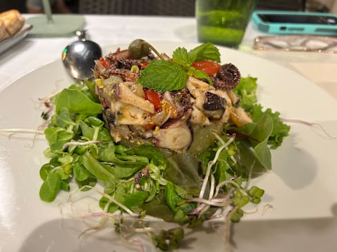 6/10THE BEST and WORST THINGS EVER. I'll start with the good news... the tuna tartare and the octopus were two of the best l've ever had. The tomato salad with dried ricotta Salita was very good. After all the fish we wanted, something that was not seafood, however, oth ak the only option sound Copy as honey chicken with walnuts. The absolute toughest driest piece of chicken I ever tried to eat my life. I explained to them it was inedible and he agreed it's usually tough and dry however, they wouldn't take it off the bill. I got a check and decided it's not worth arguing the rest of the meal was so good, however I would not return or recommend this restaurant. We were planning to come another night for dinner. I won't be able to enjoy it.