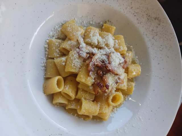 - Burger di manzo di scottona da 250gr con cipolla caramellata cheddar e bacon (doppio burger +4€) e patatine fritte