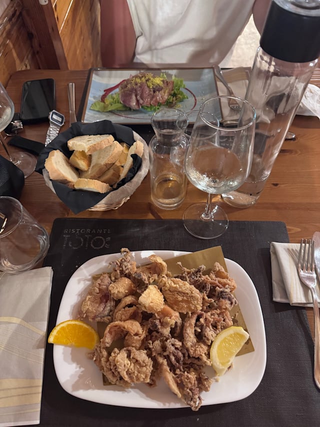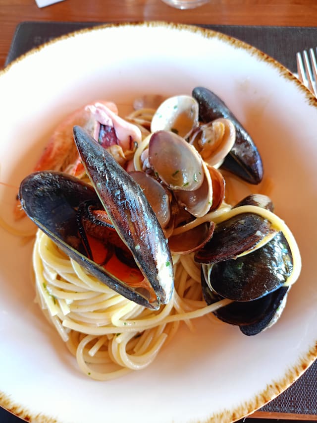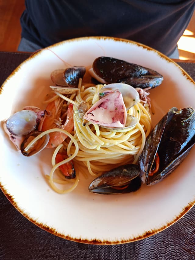 9/10Very good fish restaurant at reasonable price. Staff is good and friendly. Risotto al nero di seppia è eccezionale!! Is on the sea, when sunny the view and sunset are very nice.