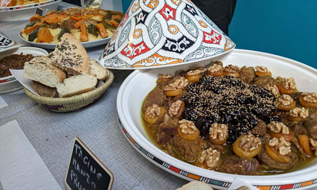Con carne di agnello, prugne/albicocche, noci e sesamo