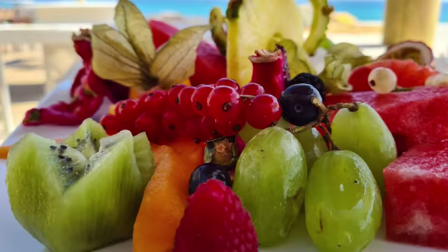 - pesce spada*, pomodoro datterino, capperi, olive verdi, menta, basilico, prezzemolo, olio evo, sale, pepe