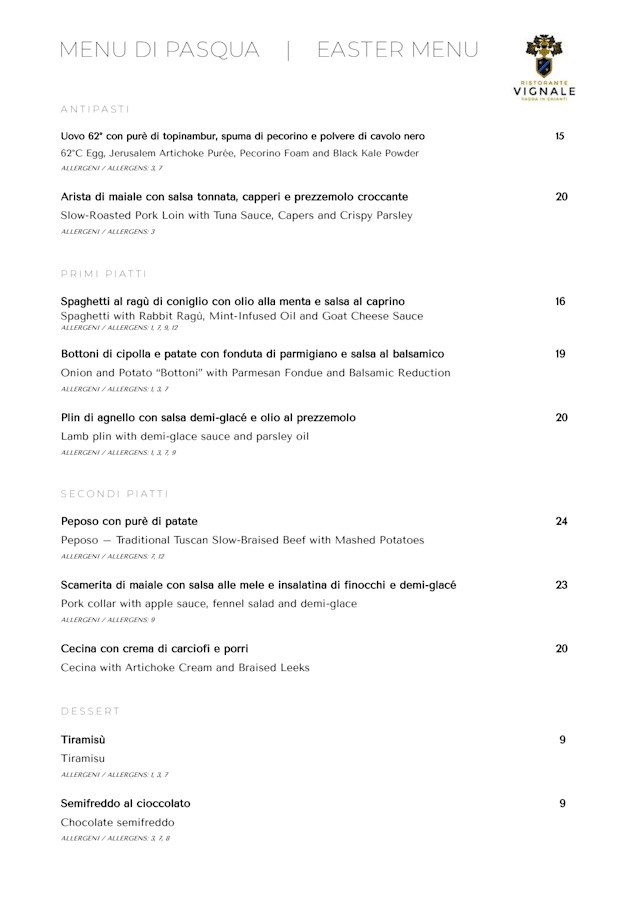 Ristorante VignaleDear jacqueline, Thank you for your feedback. We are truly sorry to hear that there may have been a misunderstanding during your dinner. Please note that all of our menu items are clearly priced to ensure full transparency for our guests. We regret that this may have impacted your experience negatively and hope to have the opportunity to welcome you again and provide you with a more enjoyable visit.
