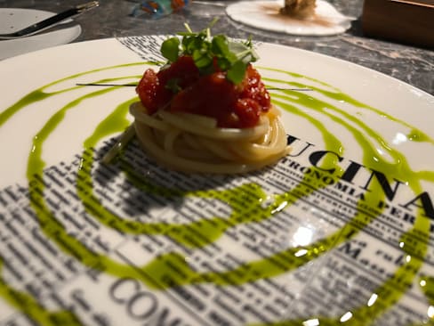 10/10+5We tried the Serendipity 6-course special. It was quite a visual and olfactory journey. Colour palette of each course echoed the Murano glass art. Potato dumplings were a highlight thanks to the sauce which was made with a lot of heart. Red scorpion fish offered an olfactory treat as each of the six mini herbs delivered a distinct aromatic profile. The starter was playful and innovative, requiring guests to use the sewing tools of the famous Burano lace-makers. Subtle use of Asian ingredients weaved through the courses like the curry base in potato dumplings and oolong tea in a Qing Hua inspired bowl as pre-dessert cleanser. Ambience was pleasant despite the unforgiving Venetian summer heat thanks to the proximity to the canal and the cover of the Wisteria tree - the restaurant’s namesake. Staff were professional and friendly. Dessert ended the night on a somewhat pensive note. The mouthfeel of pollen was an acquired taste but was ultimately balanced by the generous use of fig.