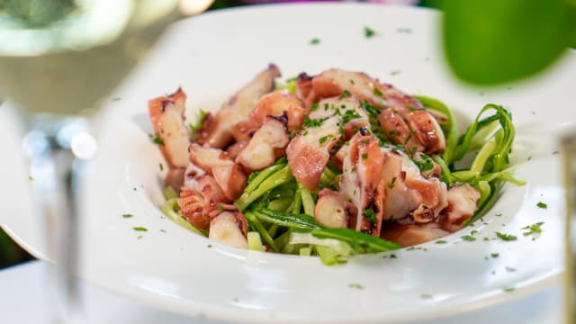 Polpo e patate - Bruschetta rucola e salmone - Soutè di cozze - Frittelle di alghe - Cocktail di gamberi - Tris di fritti di mare (Crocchetta di baccalà mantecato - Gambero butterfly - Mazzancolla al panko)